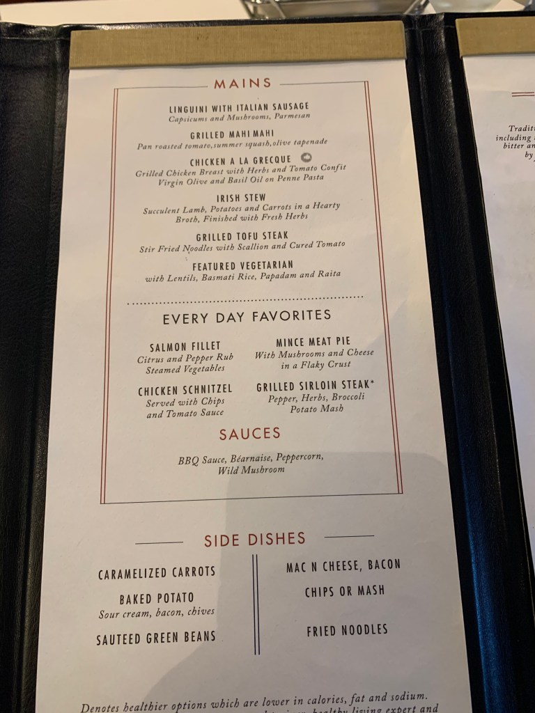 Menu Dining at the Empire Restaurant.